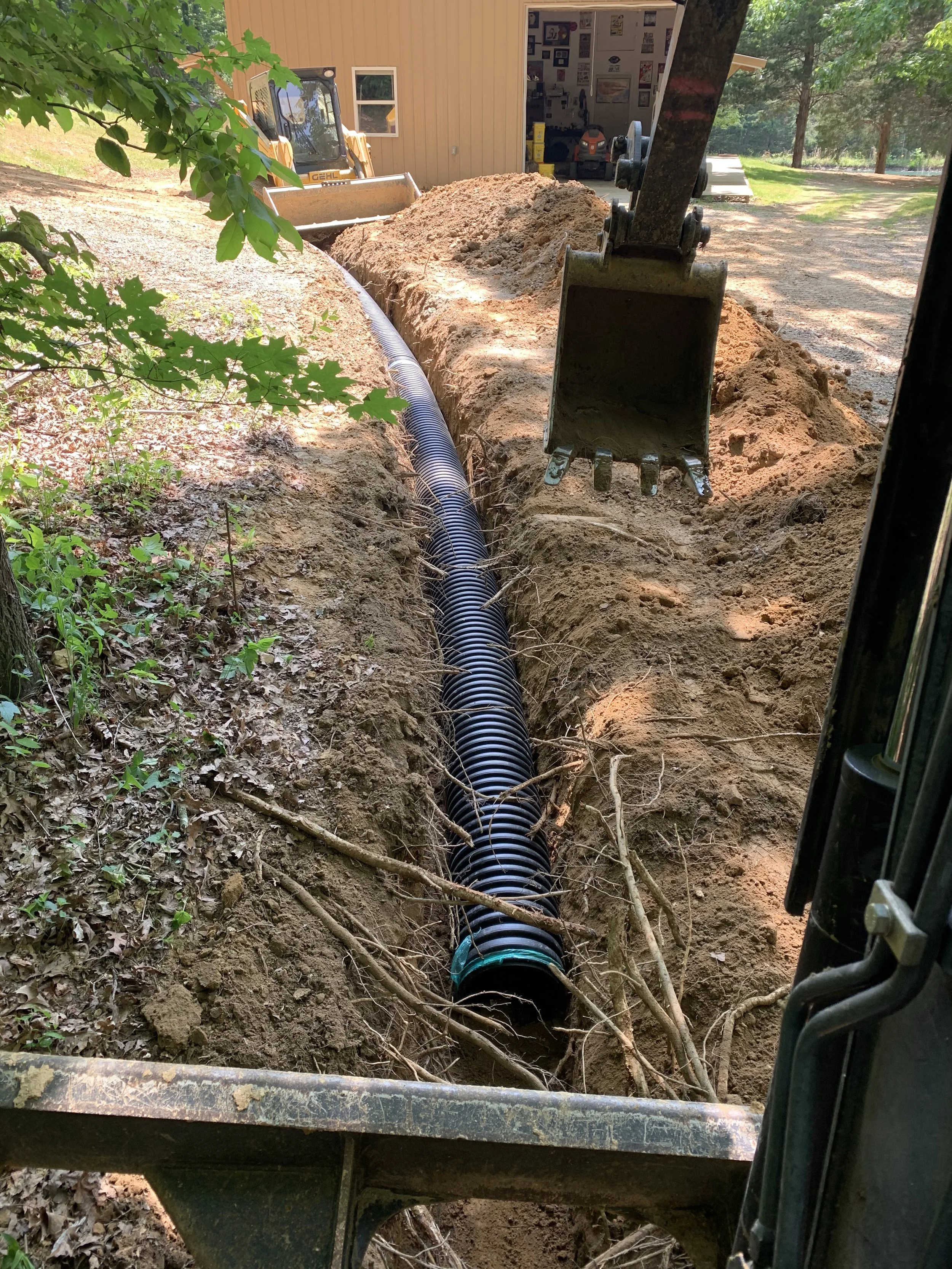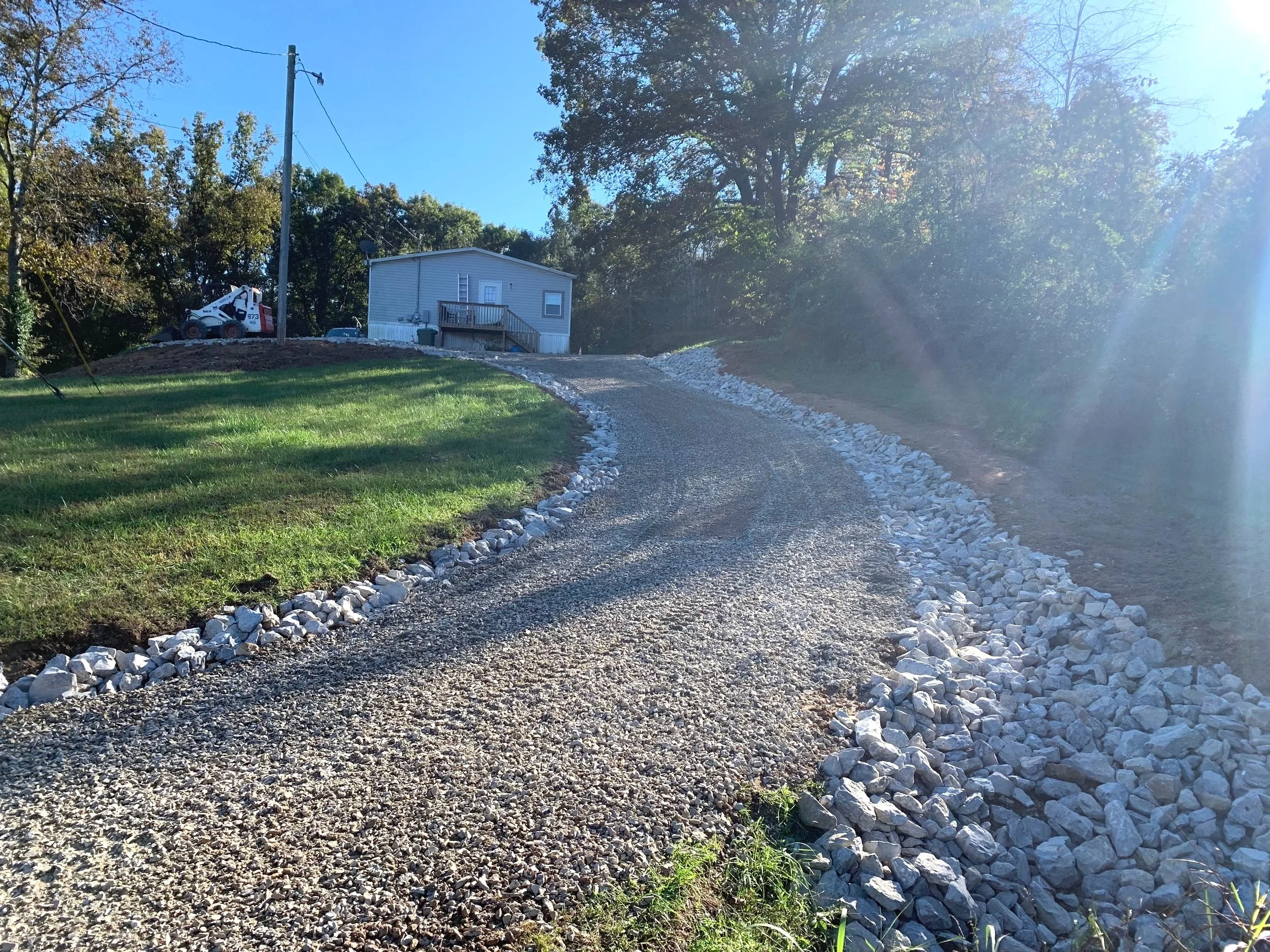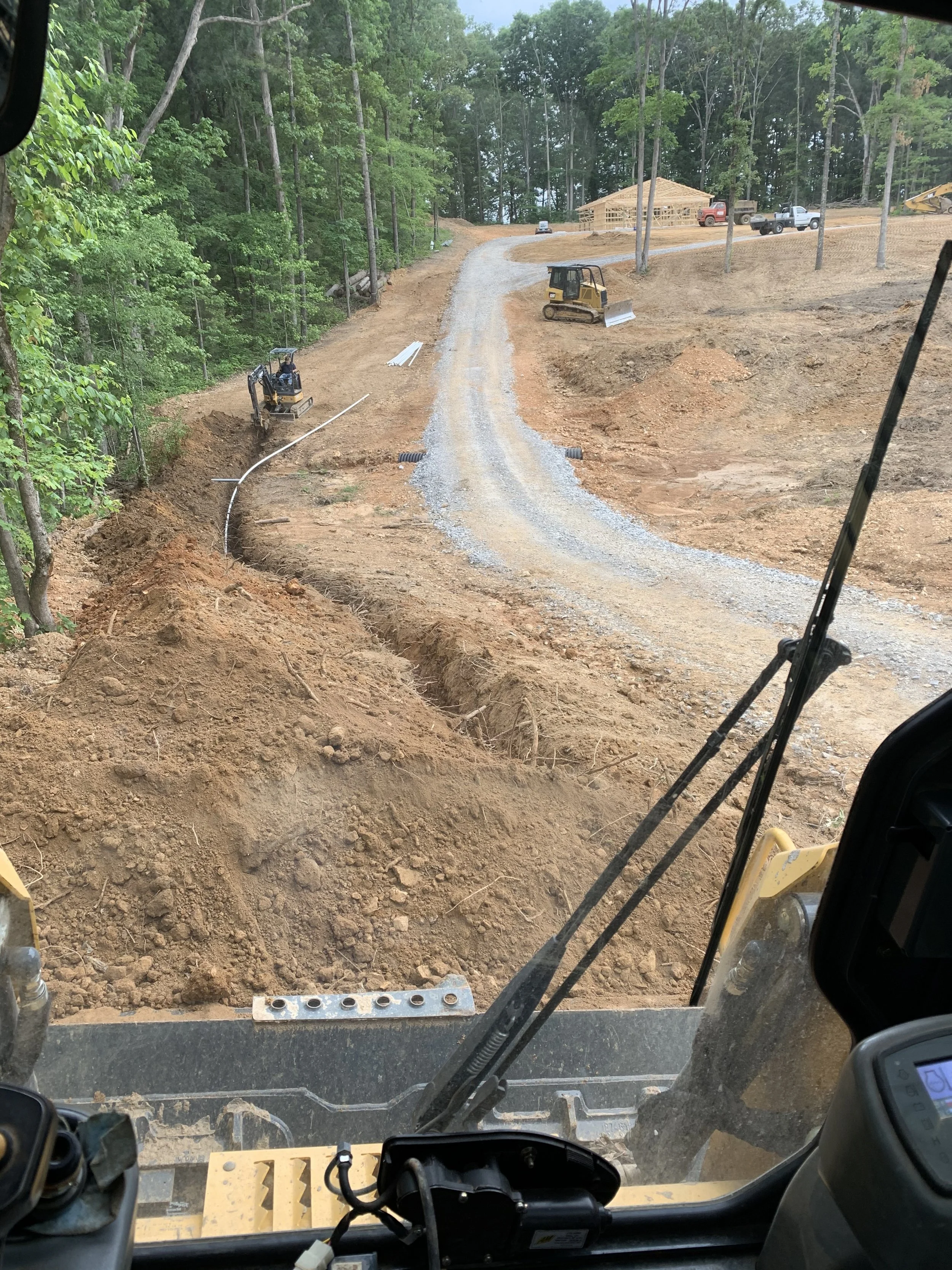 Excavation can fall into multiple categories. In some situations, we are able to use what the land provides in order to complete the task at hand. Whether it be to remove material in order to achieve a lower depth/grade or use material the land provides and relocate it in order to achieve a higher depth/grade. Prepping home sites, building sites or even cutting in and installing a new driveway all require a firm compacted base to build off of. This requires the necessary steps of stripping back topsoil and revealing hard pack then building up your rock foundation. This prevents unwanted settling and prevents problems in the future. Some situations demand a larger stone being brought in and spread in order to firm the ground up for a more solid base. Seasonal conditions can also play a big part in determining the correct application.